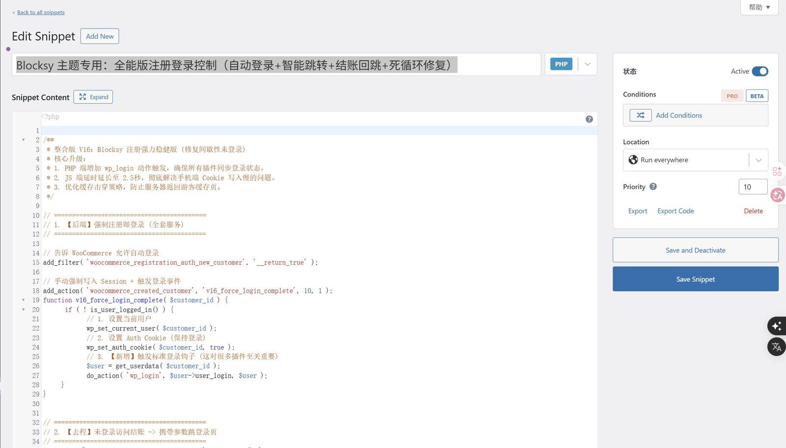 成为第一个“Blocksy 主题专用:全能版注册登录控制(自动登录+智能跳转+结账回跳+死循环修复)” 的评价者